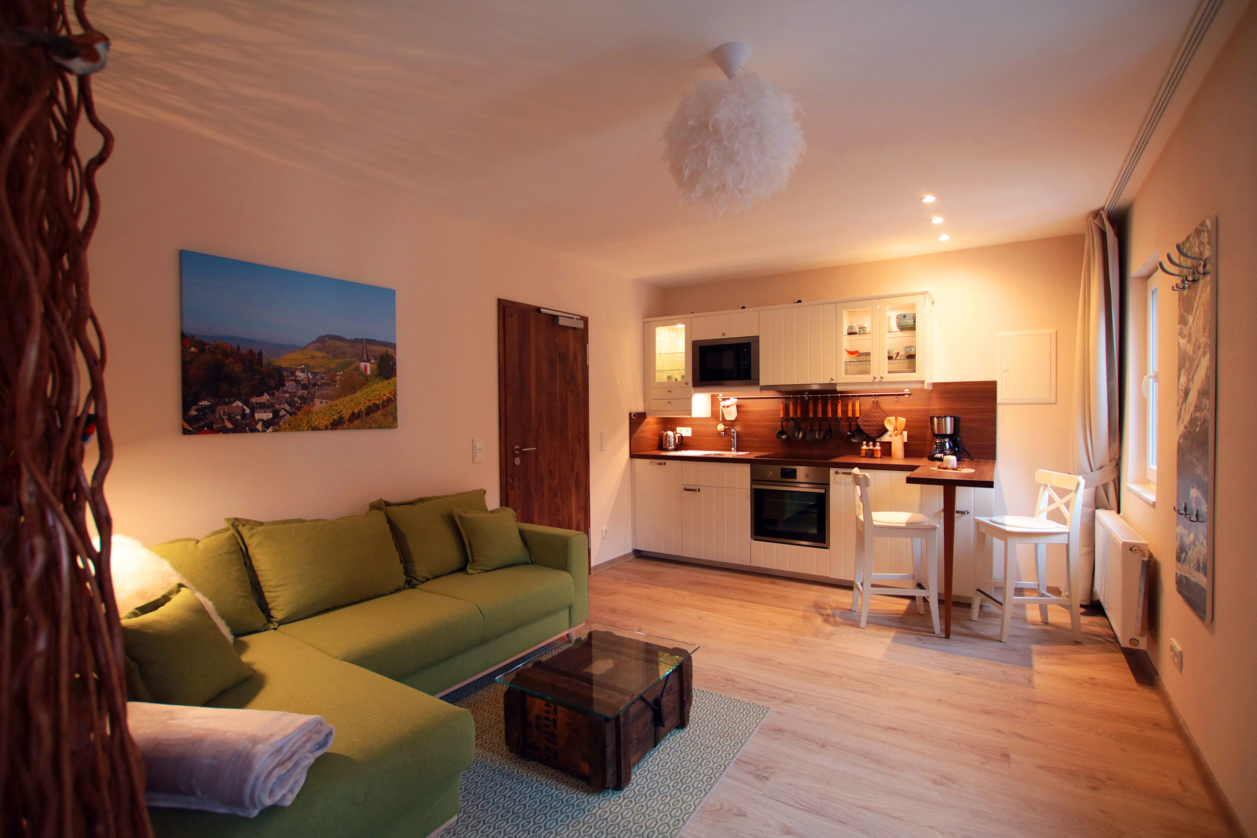 Werden Sie „Premium-Gast“: Direktbucher (telefonisch oder über unsere Webseite) erwartet zusätzlich eine gute Flasche Riesling im Küchenkühlschrank, dazu ist ein Wäscheservice inkludiert.