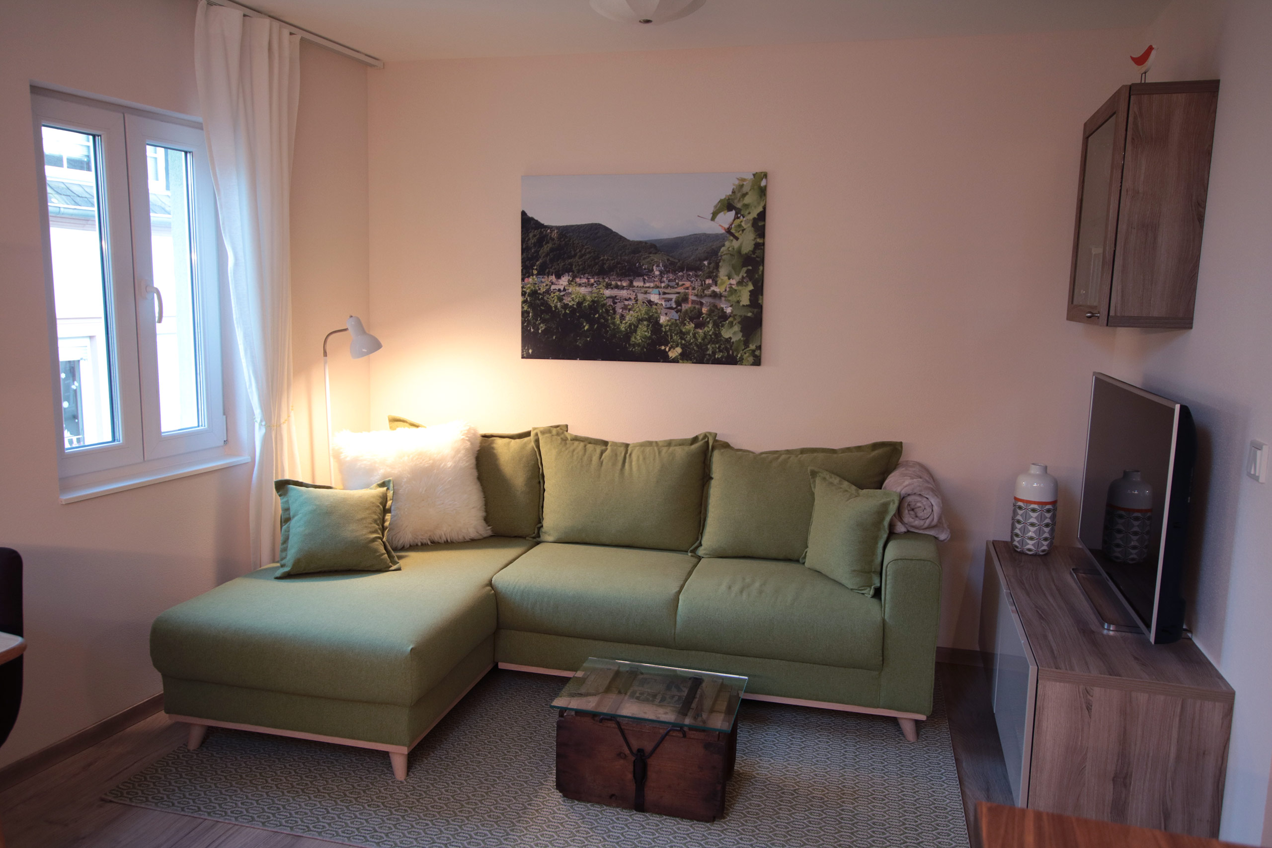 Flatscreens in Schlaf- & Wohnzimmer.
